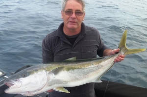 An awesome pelagic game fish. Kingfish are easily recognisable by their distinct yellow tails and (dorsal, pectoral, caudal) fins. They are generally dark green in colour,Kingfish are excellent eating fish with thick white fillets; they have a pleasant flavour and only a few large bones. Kingfish have a moderate oiliness to them and they are easily adaptable to a variety of cooking methods. They make excellent sashimi and to cook, are best prepared in foil on the BBQ or baked to retain flavour and to keep the fillets moist.